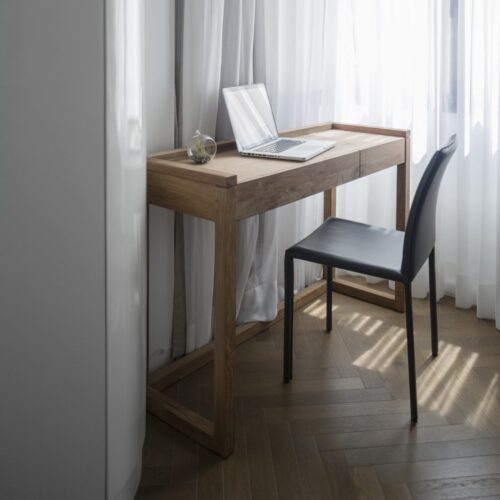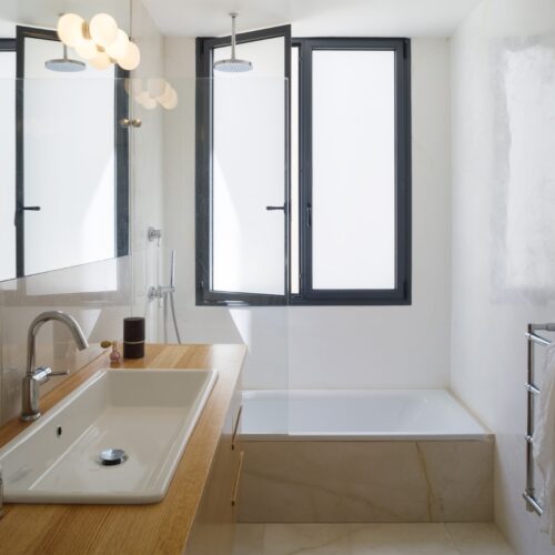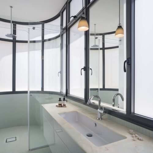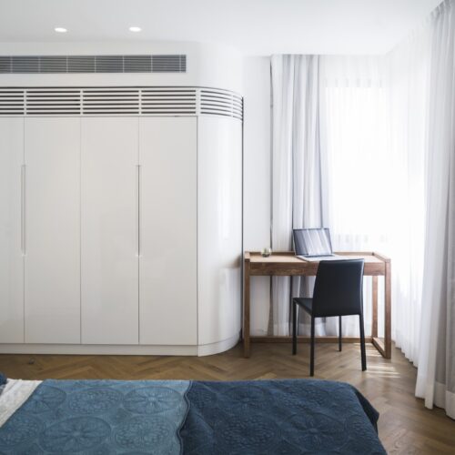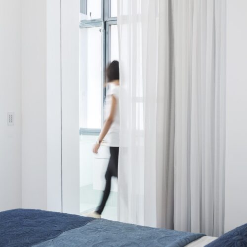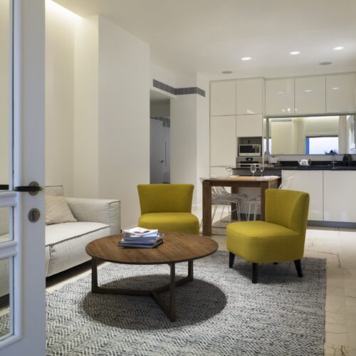 תכנון מחודש לדירת שלושה חדרים שנבנתה בשנת 1935, עם נוף לים. מיקומם החדש של החללים הציבוריים מאפשר מבט אל הנוף.