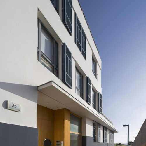 תכנון מבנה מגורים חדש בן ארבע קומות ומרתף. מיקום המגרש על צלע גבעה צופה לים היווה השראה לתכנון הבניין, באזור לבניה חדשה.
